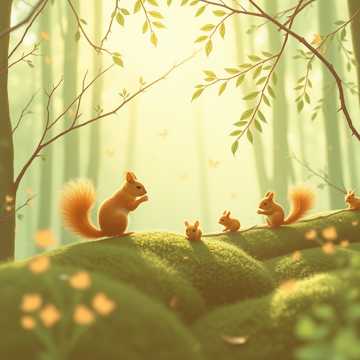 Light 2/4 forest folk, Bright major key, no dark harmony, Main melody: soft flute, Counter phrases: Irish tin whistle (short answering motifs), Light harp arpeggios (subtle, not dominant), High piano accents, delicate and playful, No heavy low strings, Airy, warm, gentle woodland atmosphere, Playful, quick, diagonal movement feeling, Short phrases, light rhythm, clear tone, Soft, natural reverb, No dramatic build, no sadness