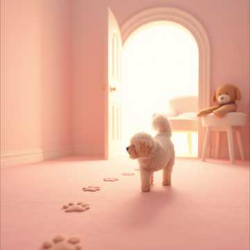 A cute nursery rhyme, Piano, strings, and pads, A gentle, pulsating rhythm, Soft dynamics, It evokes the image of a gentle dog pampering its owner, It feels like being left alone and snuggling on the owner's lap
