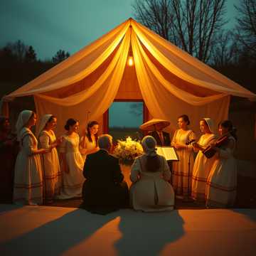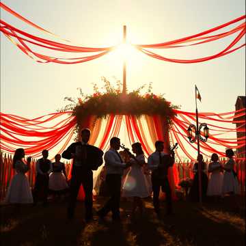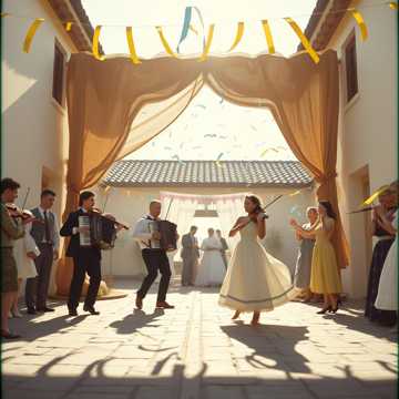 Upbeat tempo, steady dance groove, No tempo changes, No slowdown, no dramatic sections, Major key, cheerful harmony, Simple, repetitive folk chord progressions, Group singing feeling, Male lead vocal with occasional folk-style backing responses, Natural village choir character, not polished pop vocals, No rock elements, No electric guitar distortion, No modern pop production, No electronic sounds, No funk, no disco, no hip-hop, Song must sound like a real Ukrainian wedding celebration, joyful, communal, energetic, and heartfelt, Wedding celebration mood, Singing should invite dancing and clapping, Audience participation