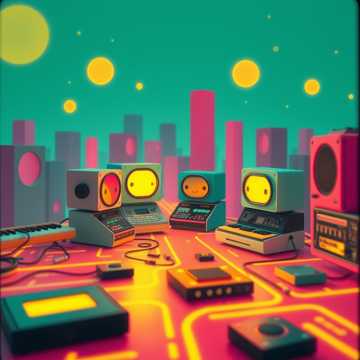 A playful synth-pop track with quirky, percussive sounds mimicking beeps and data blips forms the backbone, Light funk guitar riffs bounce over a tight bass groove, Each verse alternates instruments, as if the synths and rhythms are 'conversing', Breaks highlight playful call-and-response between synths and vocoder-processed “voices, ” layered with cheeky FX, The bridge features clashing melodies and comic dissonance as the 'argument' heats up, before the groove resolves to a bright, tightly-wound finale