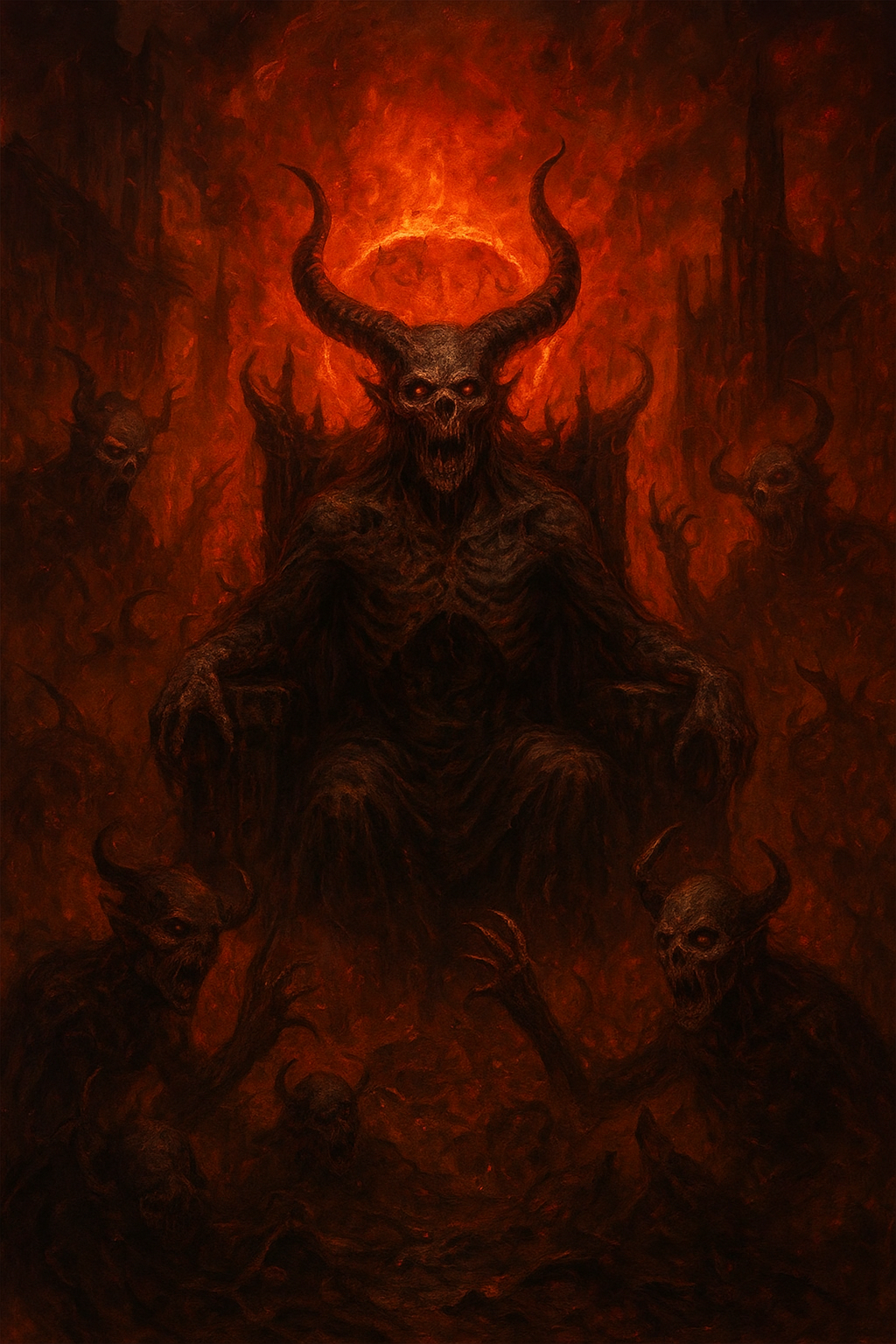 Create a dark, symphonic track with a hellish yet heartbreakingly emotional atmosphere, Blend haunting cellos, shrieking violins, colossal octobass, and gothic organ swells, as if Satan conducts not just rage but sorrow, Layer distorted 808s, gritty phonk drums, and industrial percussion with djent-style riffs and a twisted, hip hop–inspired beat that feels like defiance against fate, Infuse theremin wails like lost souls, glass harmonica shimmer like fragile hope, hydraulophone pulses, earth harp drones, and fractured Pikasso guitar melodies, Add pyrophone blasts, cimbalom strikes, ancient crwth drones, and metallic Zeusaphone resonance, Incorporate hell bells tolling like funeral rites, demonic choirs aching with grief, and infernal brass that roar like war against heaven, Vinyl scratches and synth-guitar hybrids scar the texture, while hyperbass flute lows and cinematic swells rise into relentless, tragic crescendos, The result: regal, terrifying, yet profoundly mournful