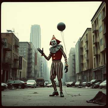 An apocalyptic industrial war symphony unfolds — a rancid storm of grinding bass and razor-sharp strings, each drum hit the march of a doomed army, Hell’s lungs exhale fire through chainsaw distortion; rusted drums slam like collapsing factory doors while colossal brass bellows beneath cracked cathedral organs, Metallic water boils in rhythmic bursts, distorted record scratches grind like fractured memories, Backward laser wails spiral through glitching arcs as molten brass drips gold through static, A defiled digital choir chants in corrupted code, swallowed by sub-bass born in the bowels of a dying machine, Screeching synths twist like tortured steel, glitching under the weight of madness, Didgeridoos rumble under shimmering distortion; cybernetic ghosts scream through reverb and ash, Sacred dread collides with manic playfulness — divine decay meets gleeful mockery in a catastrophic, glorious collapse