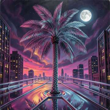A gritty, energetic 80s Pop-Rock / New Wave fusion track, channeling the "Scarface" soundtrack vibe, It blends Moroder-style signature sequenced electronic bass with live instrumentation, A distorted Electric Guitar plays power chords and palm-muted chugs that accent the electronic beat, The drums are heavy and punchy (LinnDrum style), The main hook is a sharp, aggressive Synth Lead riff that repeats infectiously, The atmosphere is edgy, nocturnal, and dangerous ("Miami 1980s"), It bridges the gap between dance music and rock, featuring intense energy and a driving tempo (around 140 BPM)