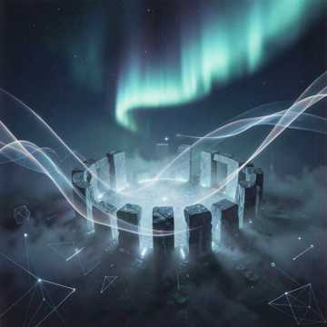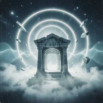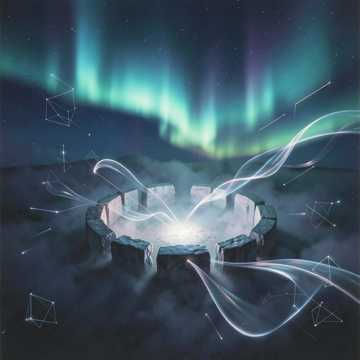 Instrumental, Fusion of gagaku treated as ambient/drone with IDM micro-editing, Tempo ~88 BPM, 4/4, slow pulse, Drone bed = sho-like sustained chord clusters (aitake colors, open fifths, E-centered ryo/ritsu hue), evolving by subtle voice-leading, no functional cadences, Lead = hichiriki-like breathy reed, no vibrato, slight portamento; ryuteki-like flute adds airy ornaments, Texture = heterophony: parts move in parallel but not in unison; phrases start slightly off the bar, Percussion = shoko/taiko/kakko-style cues every 4 bars; IDM layer uses soft clicks, granular ticks, glitch sprites, ghost notes; polymeter 5:4 vs 4:4; micro-delays and probability-based triggers, Structure: Netori-like intro (pure drone + sparse ornaments) → Main A-B-A’ (long breath-phrases, restrained swells) → Zanraku-like coda (thin to drone + plucked strings), include brief sanben-style repeats without speeding up, Avoid heavy kick/snares; emphasize negative space, temple-like reverb, long decays, tape-hiss war