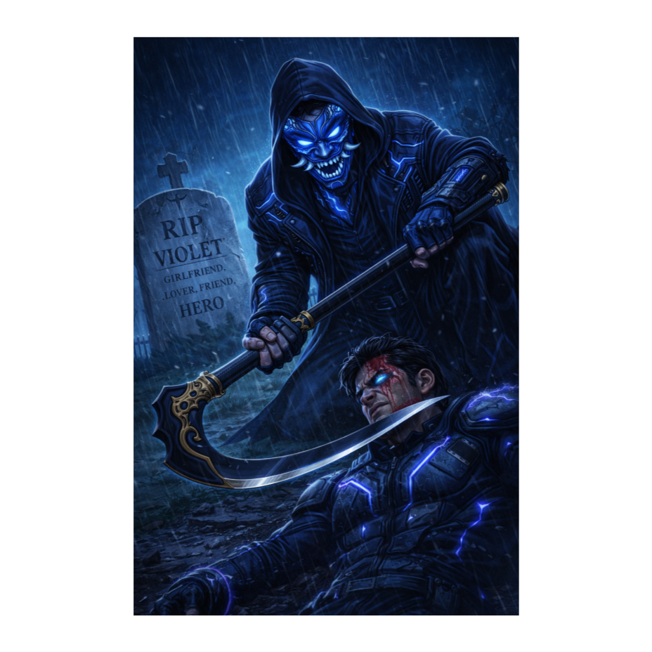 Dark Drill – keeps the track grounded, rhythmic, and menacing, but controlled, not hype or shouting; the hi-hats and 808s give tension and edge, Industrial / Cyberpunk – metallic clangs, distorted synths, glitch FX; represents Neo’s cyber-upgrades and futuristic villain energy, Cinematic Orchestral / Gothic Strings – slow, minor-key chords for heartbreak, Violet-motivation, and divine ambition undertone, Ambient / Droning Soundscape – deep pads and rumbles for suspense, a menacing atmosphere, and buildup tension, Trap Influence (Subtle) – soft percussive elements layered under the cinematic/drill base for modern rhythm, keeping it contemporary but not “arena hype, ”
