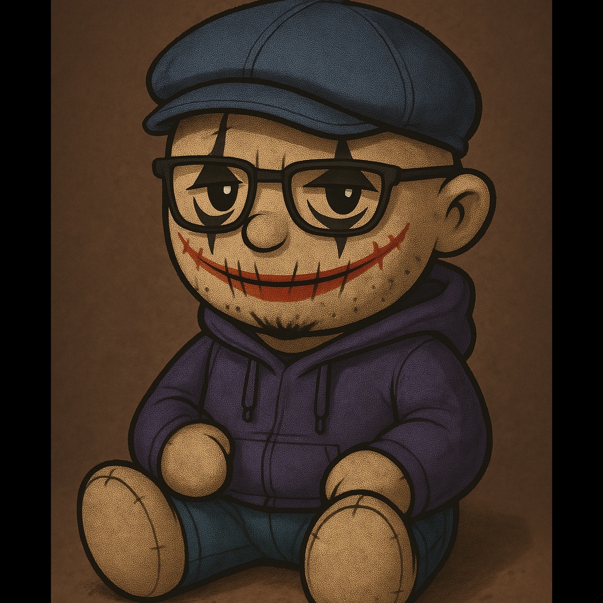 Industrial techno with persistent rhythmic drive, phonk-inspired glitch samples, playful yet sinister plushie-Borg theme