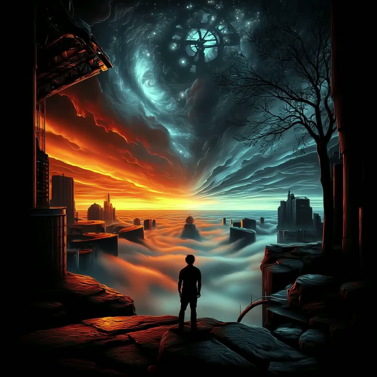 Visual Atmosphere: candlelit horizon, scars in the sky, fading hands, eternal embrace, painted sunset afterlife