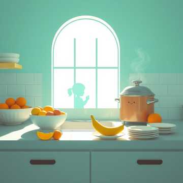 High-quality children’s music with Brazilian funk feel adapted for kids, blended with gentle melodic house and healing sounds, Style: funk infantil alegre + light house, Tempo 104–108 BPM, major key, playful groove, Signature sound: crystal bell + open major pad + whispered child choir “resgatar a magia” subtly placed in intro, bridge or outro, Instruments: soft funk bass (round, not aggressive), light electronic kick, claps, shakers, xylophone, glockenspiel, playful synth stabs, warm pads, Kitchen playful sounds (plates, cutlery) used musically, Healing textures light and joyful, Vocals: clear, sweet adult lead voice, smiling tone, Child choir energetic, rhythmic, joyful, Call-and-response moments very clear for participation, Arrangement: clean, rich, fun, Catchy chorus, bouncy groove, no heavy bass, no darkness, Everything sounds tasty, sunny and alive, Mood: joy, nourishment, sharing, vitality, Designed for children under 6, uplifting and reassuring for adults, Production qu
