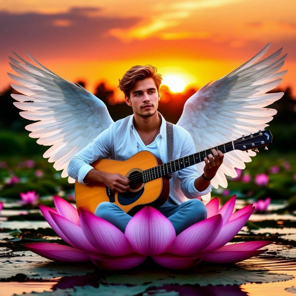 Inspiring, light, flying, instrumental music, with elements of guitar and symphony orchestra, emotionally colored, in a modern rhythmic sound, Melodic and a bit country pop, male vocals