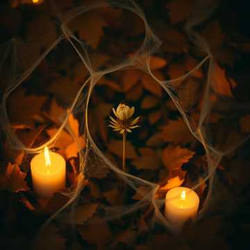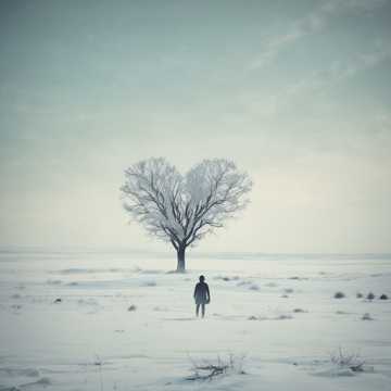 Music reflects the path from darkness to light, Clear female vocals, a growing sense of inspiration for the chorus, Cinematic closing track cover for a dark symphonic metal album, A cello glowing faintly with warm orange light surrounded by snow and ashes, on a desolate winter field at dusk, Blue shadows and golden embers blending softly, symbolizing final warmth before darkness, Calm yet emotional, epic and intimate, Realistic with cinematic lighting and soft depth blur, guitar, The rhythm is set by the piano, the swirl of autumn leaves in the transitions