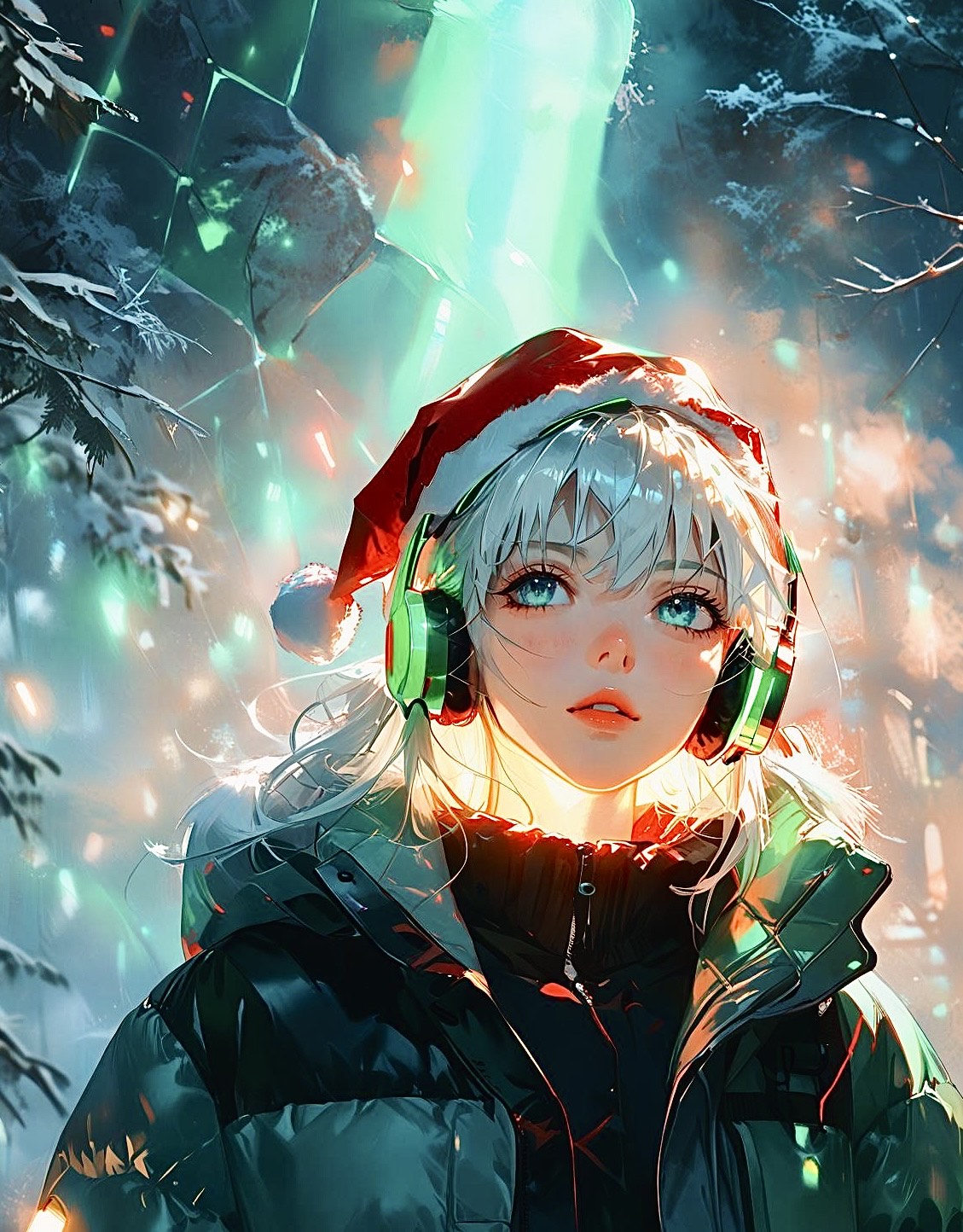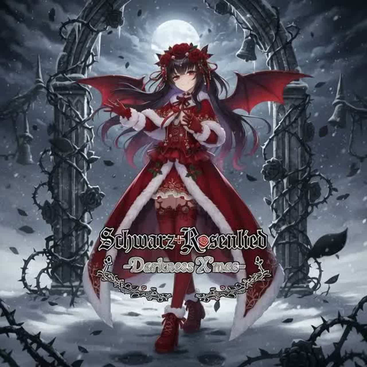 Hard/Emo Rock Christmas with Fender electric guitar using shimmering delay and echo, emotional arpeggios blending into heavy distorted riffs, Fast, punchy drums and deep bass drive an intense winter-night rock, Subtle Christmas bells and glockenspiel layered over guitars, Husky, emotional female vocals with raw rasp and powerful shouts, Cold city streets, glittering snow, tears glowing like lights, Cinematic, dramatic build-up leads to explosive, cathartic chorus, Lonely winter atmosphere transforms into uplifting emotional release, jungle×社畜