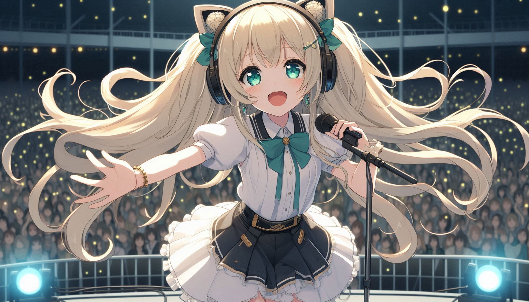 Jungle, drum n bass, cyte voice, Japanese Female Vocal, Eurobeat, Hi-NRG, Japanese female vocal, Eurobeat, Hi-NRG, Anime OP style, Synth pop, Fast tempo, Energetic, Emotional, Catchy, Sparkling, Playful, Dramatic, Uplifting, Rebellious, Magical, bell rings, Christmas theme, Live Band, Crowd Roar, Crowd Singing, Live Performance, Live Vocals, Live Guitar, Live Drums, Live Keyboard, Clapping, Sing-Along, Outdoor Concert, Festival