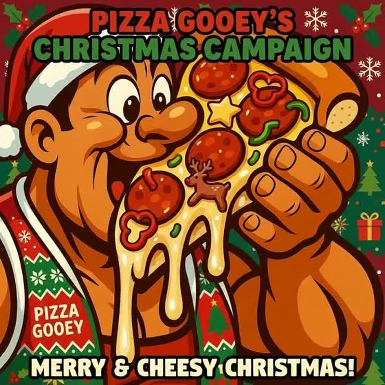 Jungle, drum n bass, pop rock, jingle, christmas, holiday bells, sleigh bells, bell rings, festive percussion, upbeat male vocal, enthusiastic baritone, catchy melody, bright electric guitar, bass guitar, acoustic drums, cheesy fun vibe, commercial style, playful energy, 2000s jingle feel, warm holiday ambience, cheesy slogan vibe, high energy, short punchy phrases