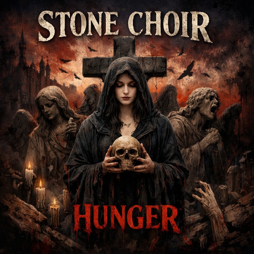 Dark **gothic metal** with doom-leaning weight and a more extreme vocal front: slow-to-mid tempo groove with down-tuned crunchy guitars, thicker palm-muted riffs, and mournful lead lines that bloom with chorus-drenched sustain, Add dense low-end bass and punchy live drums with tom-heavy fills, cymbal swells, and occasional double-kick emphasis into transitions, Keys lean heavier into church organ, minor-key string pads, and cold choir textures, widening the stereo field, Vocals shift to a deeper, lower baritone for verses with close-mic intimacy, then explode into strong gritty growls and layered harsh doubles on key lines and chorus turnarounds; blend with plate reverb and subtle slap for a haunted crypt feel, Bridge drops into near-ambient tension with whispered baritone and distant growl ad-libs, then slams back into a final chorus with thicker guitars and bigger vocal stacks, ‑bright modern pop, ‑glossy EDM supersaws, ‑happy major-key cheeriness, ‑hyper-compressed loudness, ‑trap hi-hat rolls, ‑modern pop-rap cadences, ‑chipmunk vocals, ‑quirky ukulele, ‑funk slap bass, ‑twangy country guitars, ‑upbeat reggaeton dembow, ‑K-pop sparkle, ‑power metal gallops, ‑high clean operatic vocals, ‑crowd chant anthems, ‑overly technical prog noodling, ‑sterile quantized drums, ‑pristine ultra-dry vocals, ‑pop punk bounce, ‑ska offbeats, ‑upbeat disco strings, ‑tropical house plucks