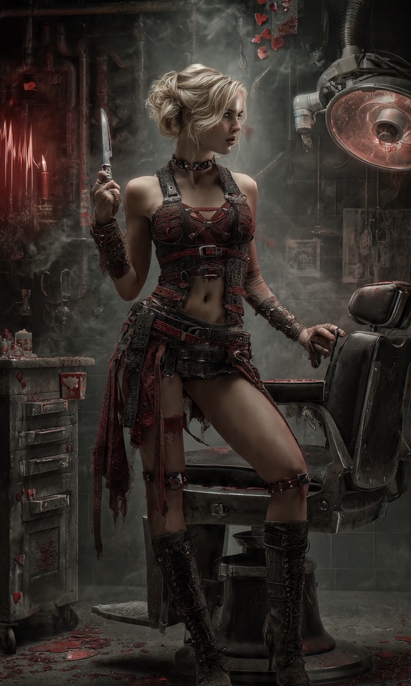 Occult Industrial Shock Rock, blending corrosive, churning guitars with thunderous, distorted bass and machine-driven drums that hit like a ritual, Dark synths and metallic textures twist through warped electronic layers, creating a night-anthem energy that’s both seductive and dangerous, Female vocals hiss, scream, and growl, dripping with theatrical menace and chaotic allure, Raw, decadent, and unapologetically aggressive, the production is a heavy, driving assault—relentless, darkly playful, and impossible to ignore, like stepping into a neon-lit chamber of shadows where every sound bites