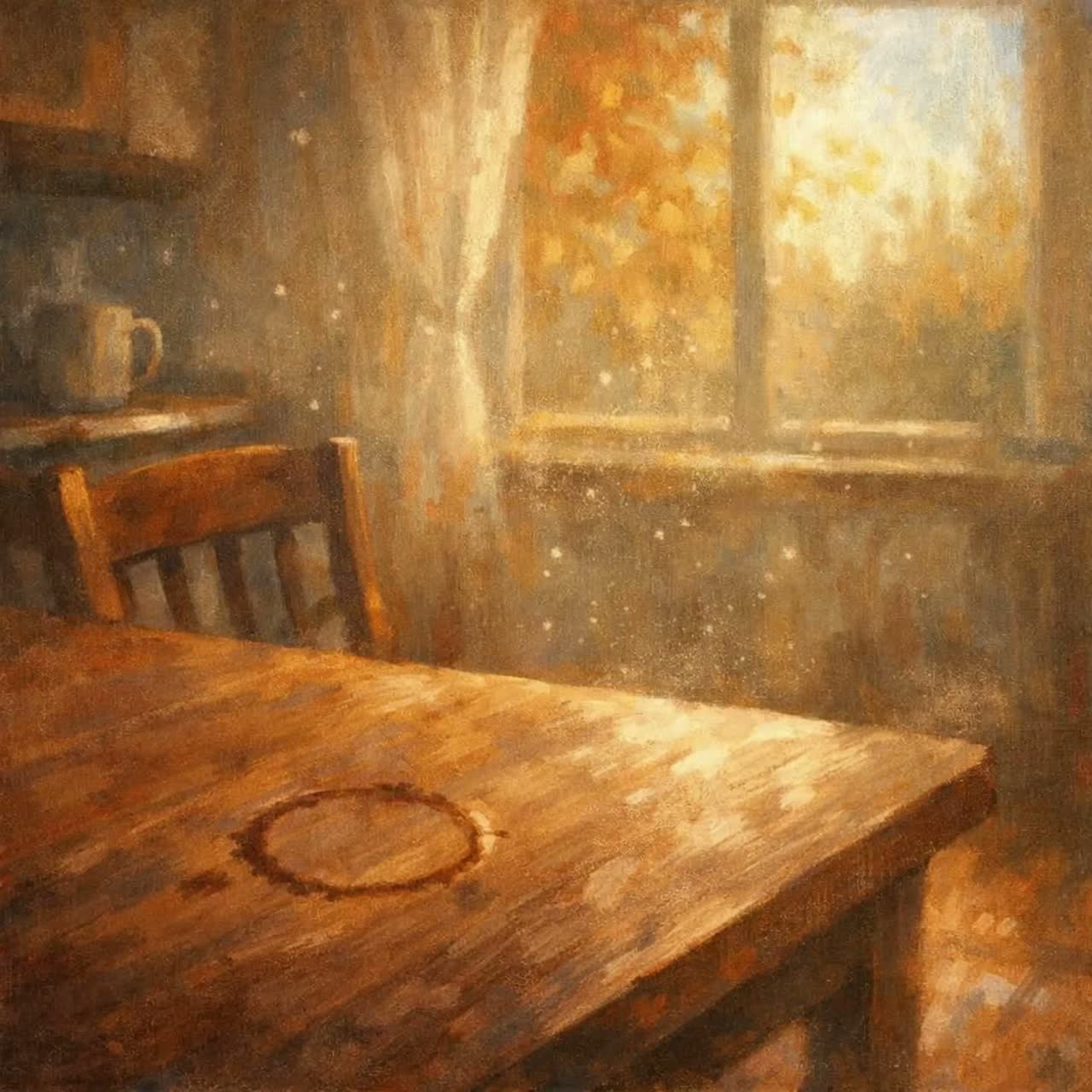 Tempo: Slow–mid, lazy pocket, slightly behind the beat Arrangement: Minimal chords (Rhodes, muted guitar), Soft dusty drum loop, warm round bass, Chorus feels fuller through texture, not volume, Bridge drops to near silence (voice + keys or guitar), Final chorus hazy, heavier emotionally, not louder, Vocals: Male lead only, low-mid register, close-mic, warm and breathy, Conversational phrasing, emotional cracks allowed, imperfect timing, No belting, no pop polish, no female vocals, Production: Lo-fi but intentional, Tape hiss, vinyl crackle, light saturation, Intimate, human, imperfect
