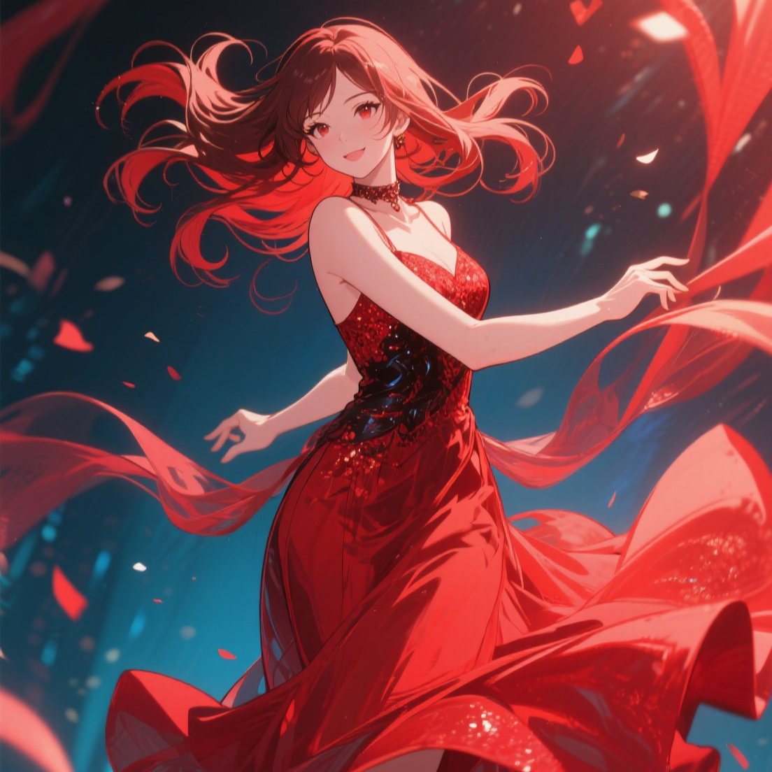Gothic rock song, BPM 140–150, Playful, seductive, and dramatic with a charming “femme fatale” energy — blending passionate rock power with teasing, cutie-honey-like allure, Lead guitars deliver cheeky, melodic riffs and emotional solos with sexy slides, expressive bends, and soaring vibrato, Rhythm guitars are bold and energetic, driving the song with dynamic, danceable power, Deep, melodic bass and pounding drums create a heart-racing groove full of tension and desire, Playful synth stabs or retro organ layers add a flirtatious sparkle, while subtle strings emphasize the romantic drama, Vocals: clear, transparent female vocals with a bright, alluring tone — sweet yet powerful, innocent yet teasing, The vocal performance should feel confident, charming, and irresistible, balancing sensuality with emotional depth, Overall tone: dark, elegant, and flirtatiously seductive — a gothic rock anthem of passion, temptation, and playful romance