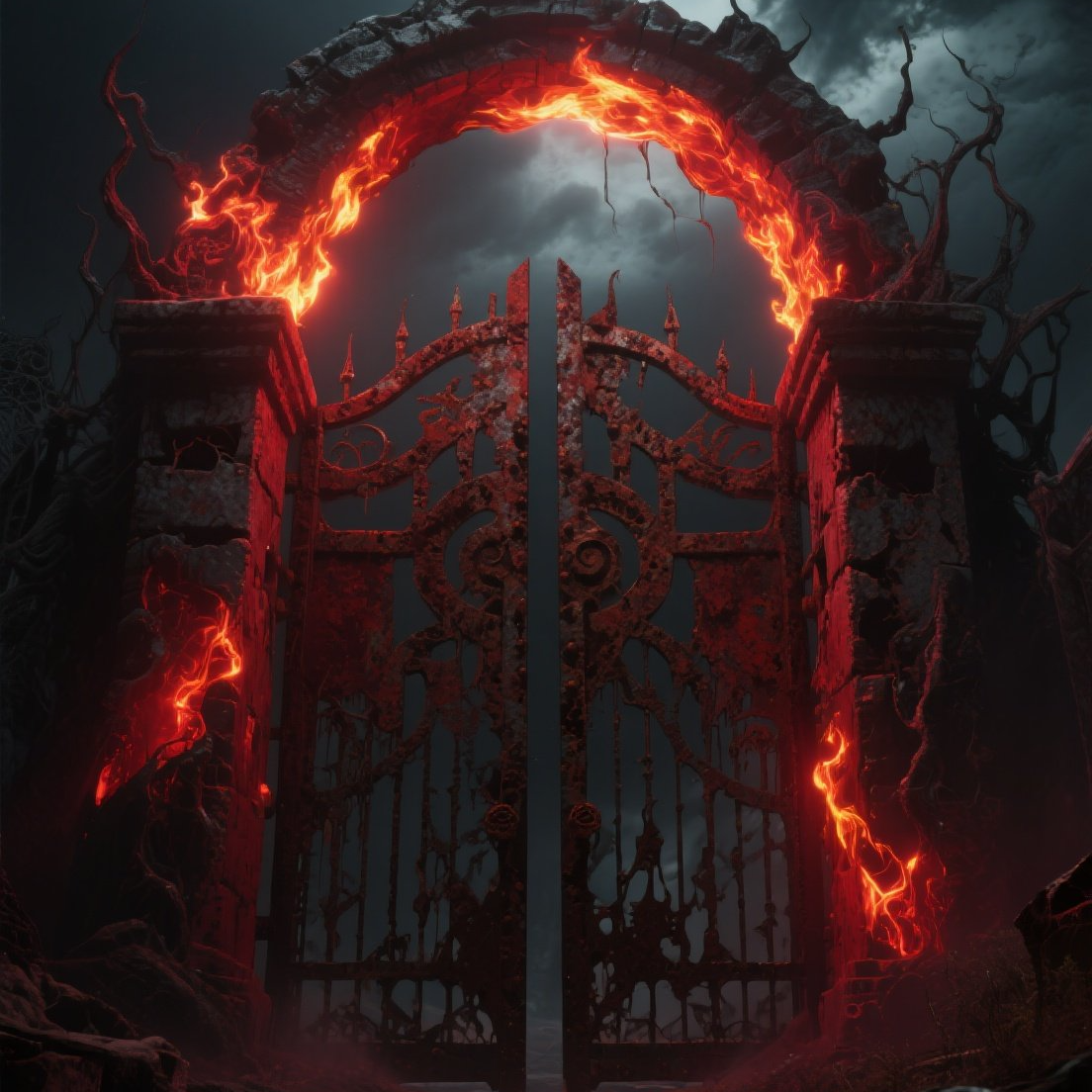 Gothic rock, dark, destructive and majestic atmosphere, crazy silence music, noise intro, mechanical sounds, glitchcore, darkwave, industrial, emphasize fear, emphasize dissonance, haunting bells and choir-like noise layers for apocalyptic grandeur, make it hopeless, catastrophic, and chaotic like total despair