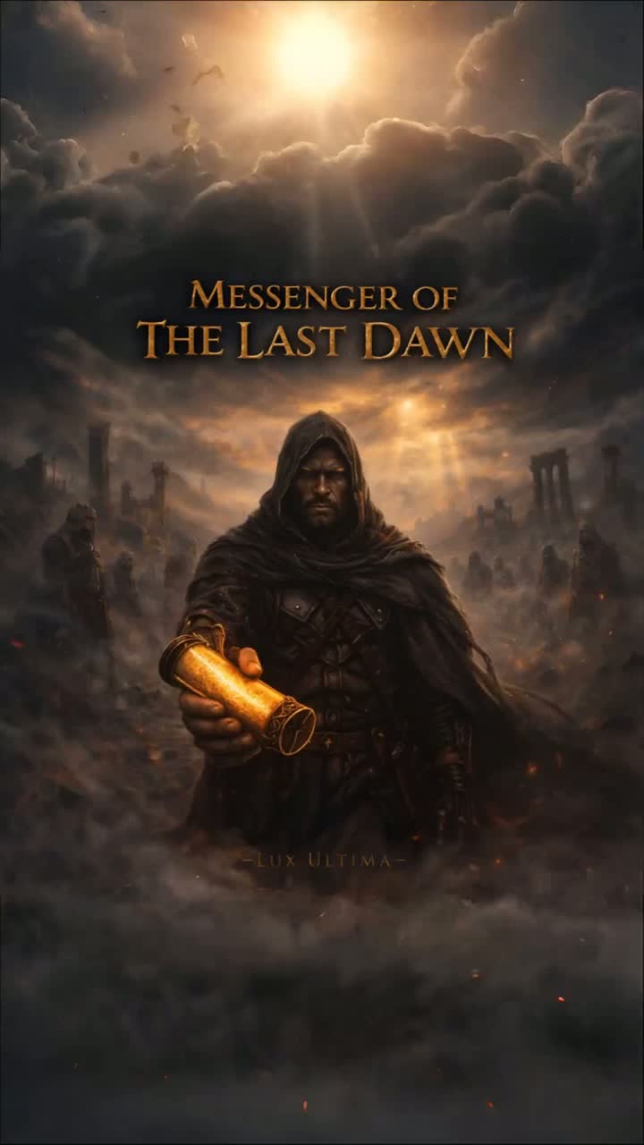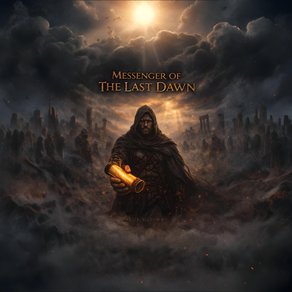 Epic dark-folk odyssey of a lone herald crossing ruin and shadow—primal drums, Latin choirs, haunted accordions, and an unyielding ember that carries the final dawn.