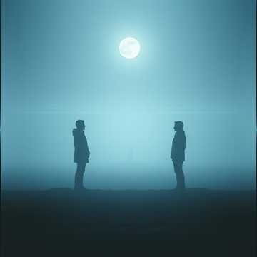 A conversation between two men, spoken words for a radio talk show, dramatic sound effects, cinematic conversation, raw male vocals