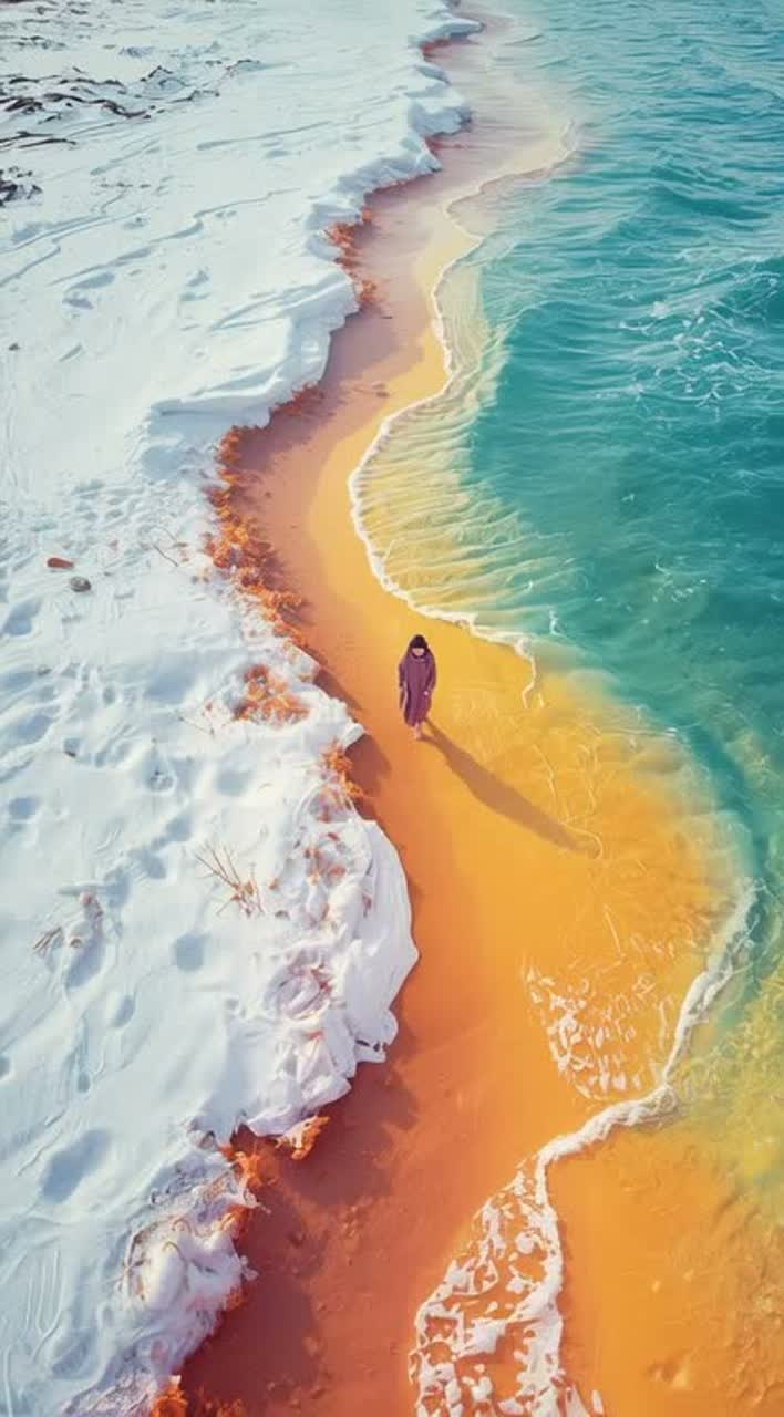 A calming ambient piece drifts at 55 bpm, featuring long sustained drones in C Major, gentle synth pads, and airy textures, Slow oceanic wave sounds ebb and flow beneath a wash of deep reverb, Minimal, distant percussive clicks subtly accent the tranquil, meditative space