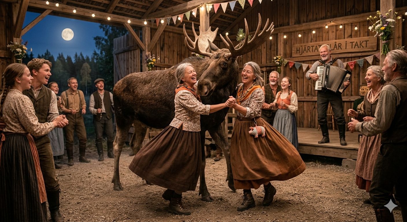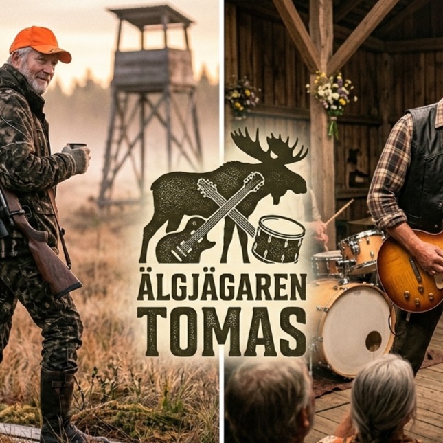 rock, Upbeat Swedish country-rock meets classic dansband groove; twangy electric guitar and bright acoustic strums over a driving four-on-the-floor kick and warm bass, Male vocals with a storyteller swagger; verses stay tight and rhythmic, chorus opens with stacked harmonies and a hooky sing-along line, Add playful fiddle fills and organ pads in the turnarounds, with a shouted crowd response on the last chorus for dancefloor energy, country, male vocals, dansband