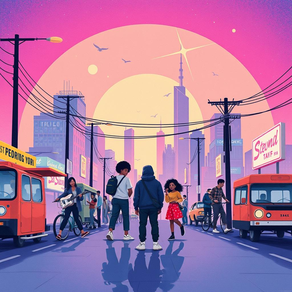 Upbeat Storytelling Indie Rock with alternating raw and melodic vocal delivery, A blend of The Hold Steady's verbose, observational storytelling and Death Cab for Cutie's melodic melancholy and lyrical specificity is a perfect fit for a narrative, [Style: Upbeat Storytelling Indie Rock with alternating raw and melodic vocal delivery]