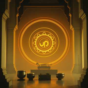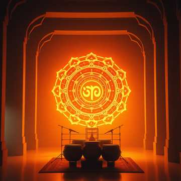 Indian Classical, Carnatic, Konnakol, A Cappella, World Music, Traditional, Spiritual, Meditation, Bhajan, Mantra, Tanpura Drone, Mridangam, Ghatam, Kanjira, Temple Bells, 8 beat cycle Adi tala, medium tempo 100 BPM, cyclic, hypnotic, sacred, meditative, rhythmic complexity, konnakol syllables: thom, nam, tak, din, dhin, ta, ka, dhi, ku, thom-nam-takadinadin, Sa Re Ga Ma Pa Dha Ni Sa, sargam, Vedic chant, Sanskrit, devotional, only vocal sounds, authentic Indian vocal percussion, tanpura drone (Sa-Pa-Sa-Pa), mridangam strokes: dhin, dha, ta, nam, ghatan sounds: ghum, bells, finger cymbals, rhythmic cycles, gradual acceleration, call and response, improvisation within tala, resonant humming, nasal timbre, vocal slides (gamakas), meditative atmosphere, sacred temple acoustic