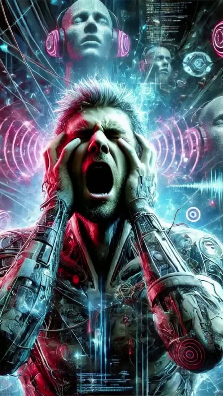 Relentless industrial thrash metal drives the pace with abrasive synthesizer textures and crushing guitar riffs, Guttural growls clash with piercing high screams over pummeling, syncopated drums, A chaotic, effects-laden guitar solo erupts mid-song, fusing precision with noise