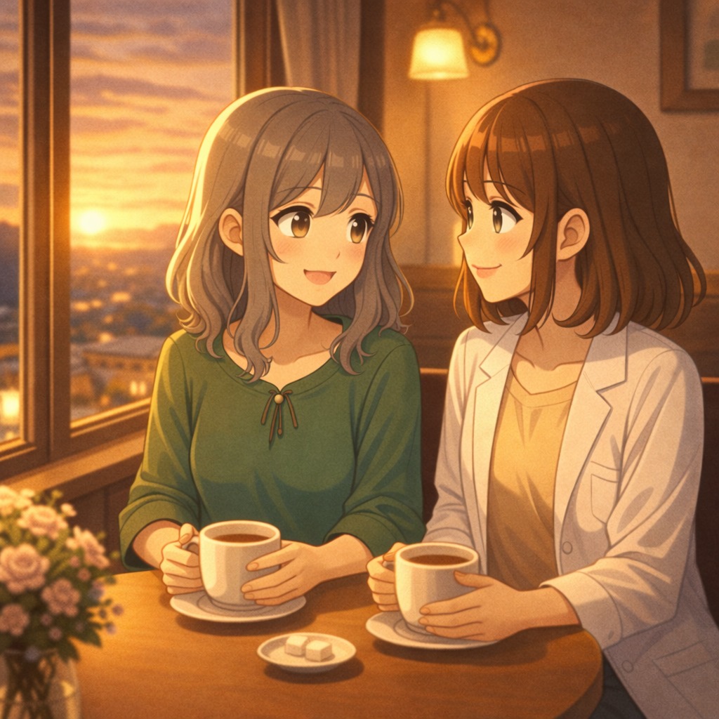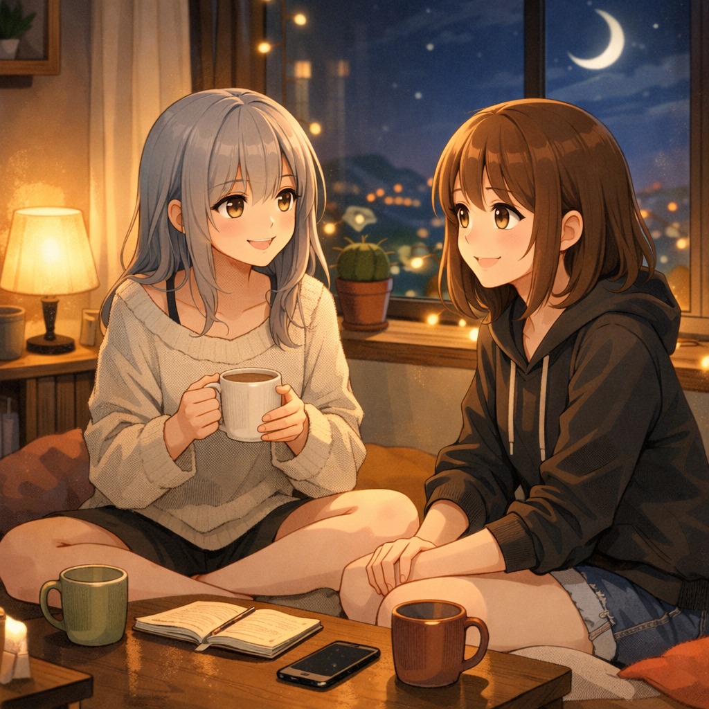 rio core, Light Japanese pop with acoustic arrangement, Cute, youthful female voice with a soft tone, Delivery should be calm, conversational, and relaxed, Do NOT sound energetic or excited, The singing should feel like gentle everyday talking, slightly shy, natural, and warm, Dialogue-style rhythm, more spoken than sung, No dramatic emotion, no powerful singing, no belting, Keep it small, intimate, and slice-of-life, Instruments: light piano, soft acoustic guitar, subtle bass, gentle percussion, Mood: cozy, awkward, wholesome conversation