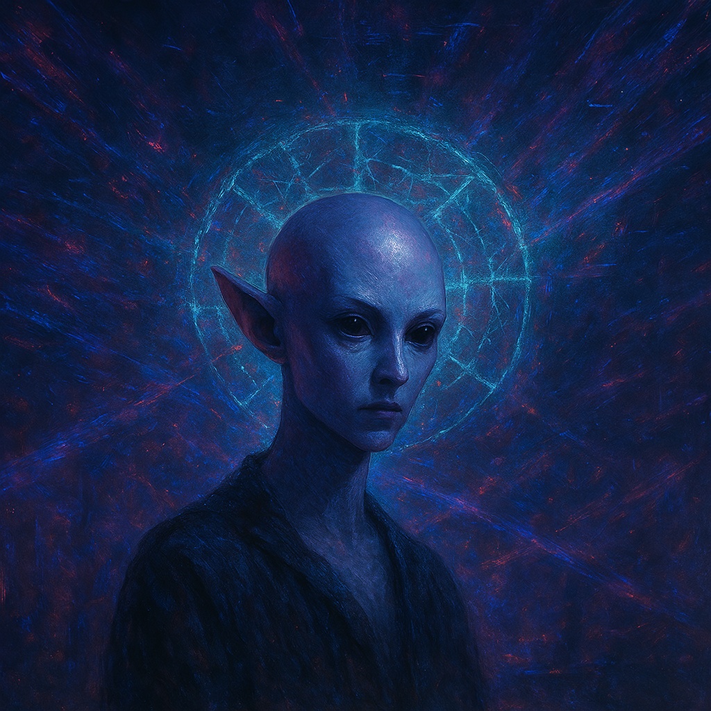 hyperpop, EDM, cinematic glitch, futuristic ballad, poetic rebellion, emotional distortion, space drama, quantum synths, melancholy, vocal layering, fractured harmony