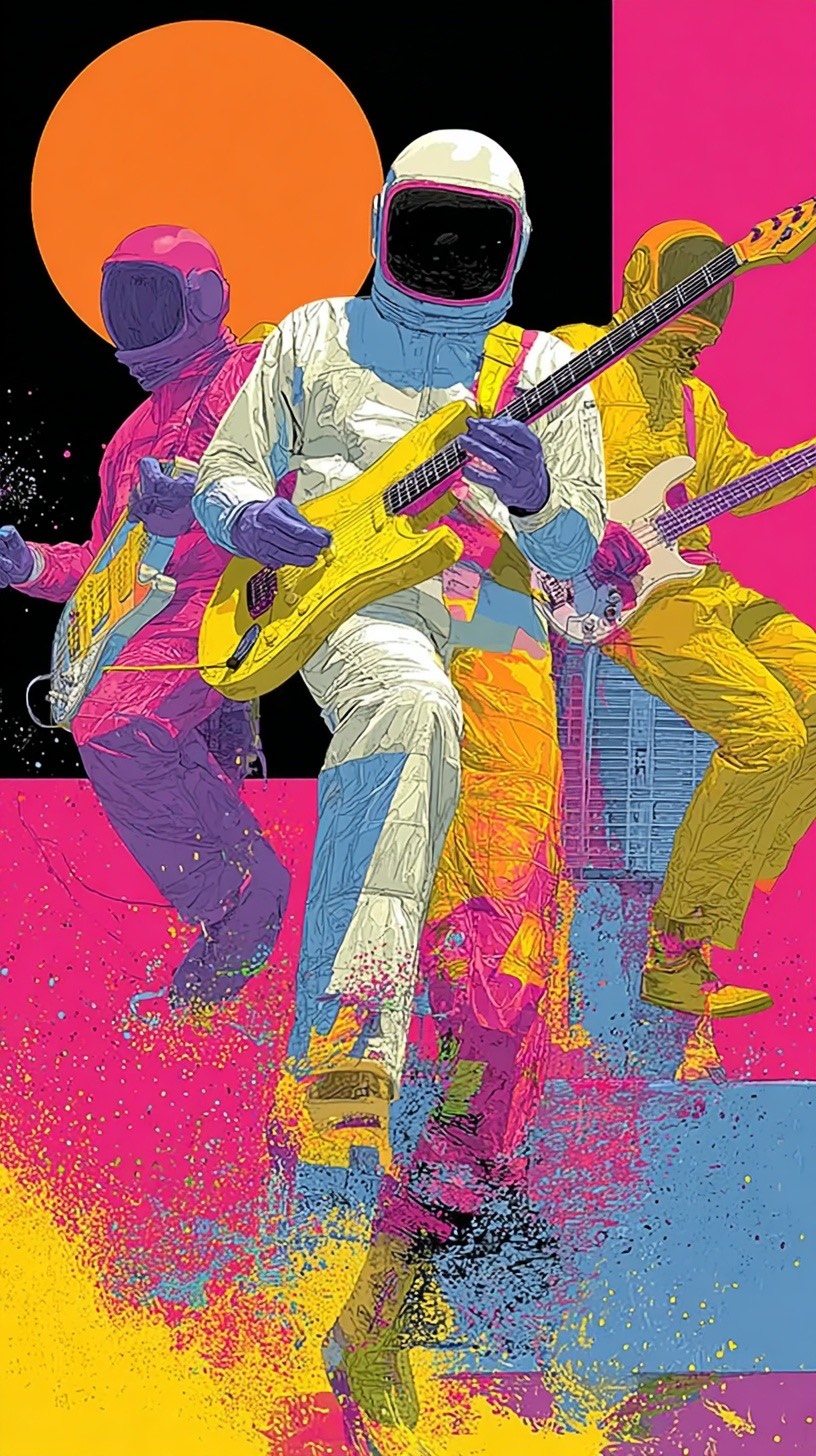 Sophisticated 2025 Breakbeat-Pop, Electro-Pop, Dance-Rock, Funky Bassline, Punchy Drum Machine, Sidechained Pads, Arpeggiated Synths, Catchy Hooks, Modern Club Energy, Male Vocals, Wah-Wah Synths Pedal, PsyFunktronica track micro pitch-shifts inject tension and unpredictability, cosmic wah-wah space disco, while vocoded hooks interplay with slap drums & claps riffs, rapid-fire speed rock-pop bars ride syncopated hip-hop drums and breakbeat fills, driving high-energy vocal sections and blending raw lyrical delivery with hypnotic loops, and maximal impact create a fully immersive sonic groove meets hyper-lyrical rap fire, with catchy spy motifs, cinematic hits, enhancing dramatic tension and futuristic elegance, bedroom-produced grungegaze, catchy, psychedelic, with acoustic tape recording and lo-fi aesthetics
