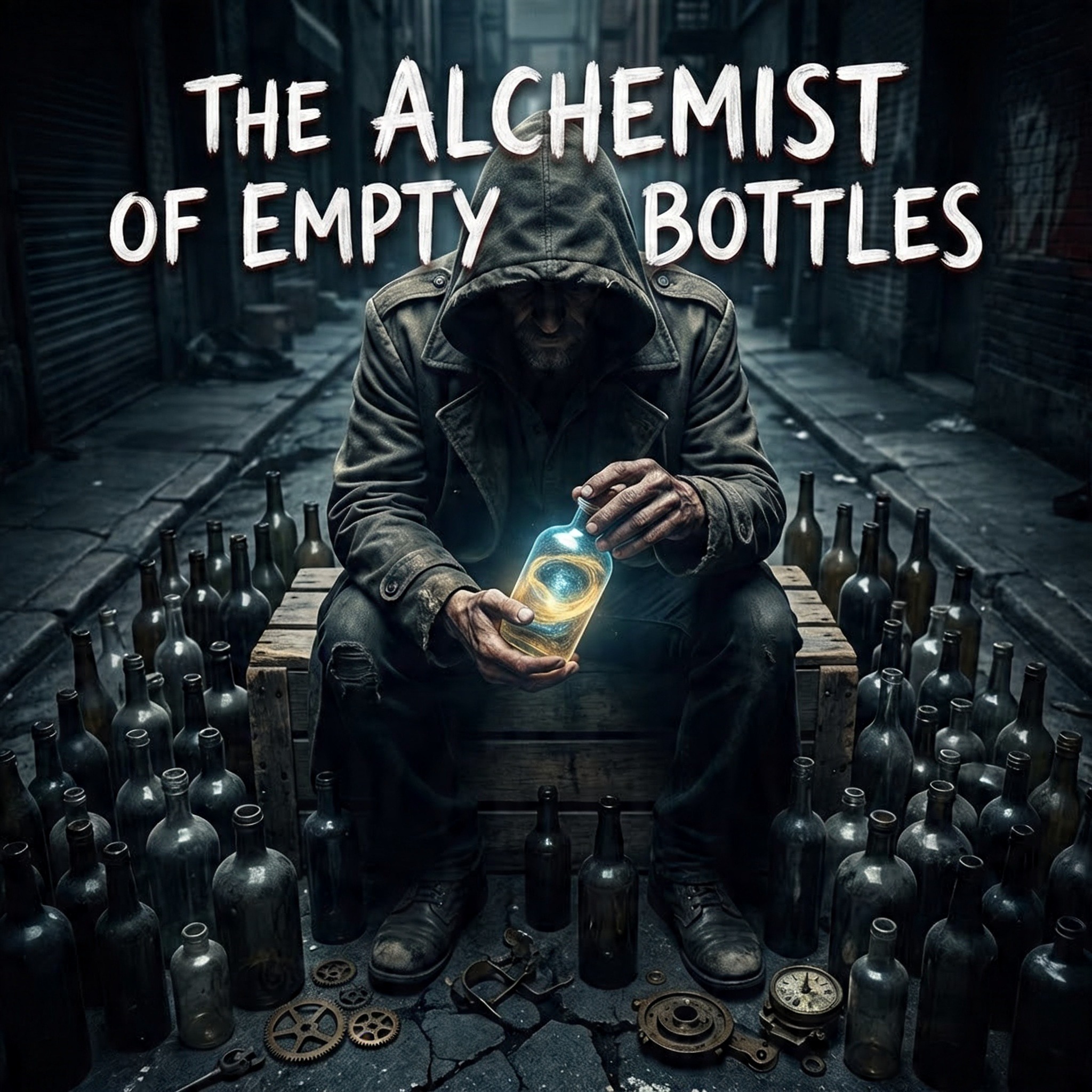 A chaotic fusion of industrial noise, ritual ambient, and experimental post-hardcore with desperate, cracked male vocals that shift between raw shouting, breathless pleas, and layered choral stacks that feel like a malfunctioning choir; delivery is unstable, swinging from intimate whispers to overwhelming walls of voice, Instrumentation avoids traditional structure—metallic percussion, detuned guitar scrapes, bowed cymbals, and low-end drones replace riffs, while distant piano hits and sub pulses mimic a failing heartbeat, Tempo is fluid, drifting between slow collapse and sudden violent surges, The mix feels clinical yet surreal—clean but cold, like a hospital room dissolving into chaos, Arrangement is nonlinear, with sections bleeding into each other, abrupt dropouts, and moments where only breath and pulse remain, Features include vocal layering that builds into suffocating density, sudden silence cuts, and a final collapse into hollow, echoing space