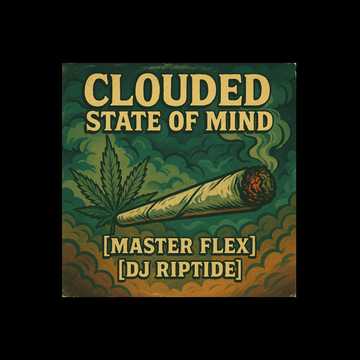 Hypnotic 90s old‑school hip hop with a slow, heavy boom bap beat, deep rolling bass, and swirling psychedelic instrumentals — airy synth pads, trippy reverb‑drenched guitar licks, and echo‑soaked percussion, Lo‑fi vinyl crackle throughout, Vocals alternate between [Master Flex]’s smooth, laid‑back stoner flow and [DJ Riptide]’s scratch‑punctuated call‑and‑response lines, Psychedelic sound effects drift in and out, giving a hazy, dreamlike atmosphere, Story‑driven verses about smoking weed, cruising slow, and zoning out under city lights, Outro features crowd ambience, record cuts like “clouded… mind” and “roll it up, ” fading into deep echo
