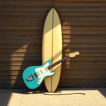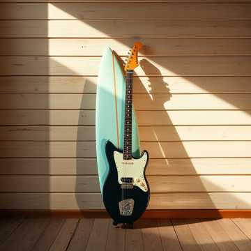Early‑60s California surf‑pop with Fender Jaguar/Strat guitars, spring‑reverb leads, clean electric bass, glockenspiel accents, warm organ, crisp rock‑drums, and bright vocal‑style ooh/ahh harmony textures, Upbeat tempo around 175–185 BPM, short punchy melodic phrases, with bright surf‑guitar instrumental breaks between verses and a bright surf‑guitar instrumental intro, instrumental only, ”