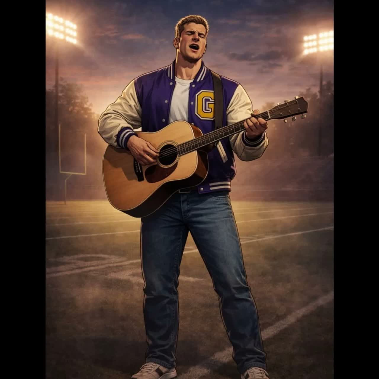 Intimate acoustic singer-songwriter ballad titled “Ten Years on the Sidelines, ” Style inspired by MTV Unplugged performances and reflective storytelling songs like “Fast Car, ” “Landslide, ” “Fire and Rain, ” “Wish You Were Here, ” and “Good Riddance (Time of Your Life), Instrumentation: fingerpicked acoustic guitar, light piano or ambient electric guitar pad, minimal percussion or none, Mood: quiet, reflective, masculine, emotionally honest, The singer sounds like a former athlete looking back on a decade of missed chances and wondering if his moment has passed, Tempo around 72–76 BPM, Key D major or G major, The guitar intro should outline a subtle melodic motif using the notes C–E–F#–G before resolving into the verse, The song should feel like someone casually playing for friends after a long night, not performing for a crowd