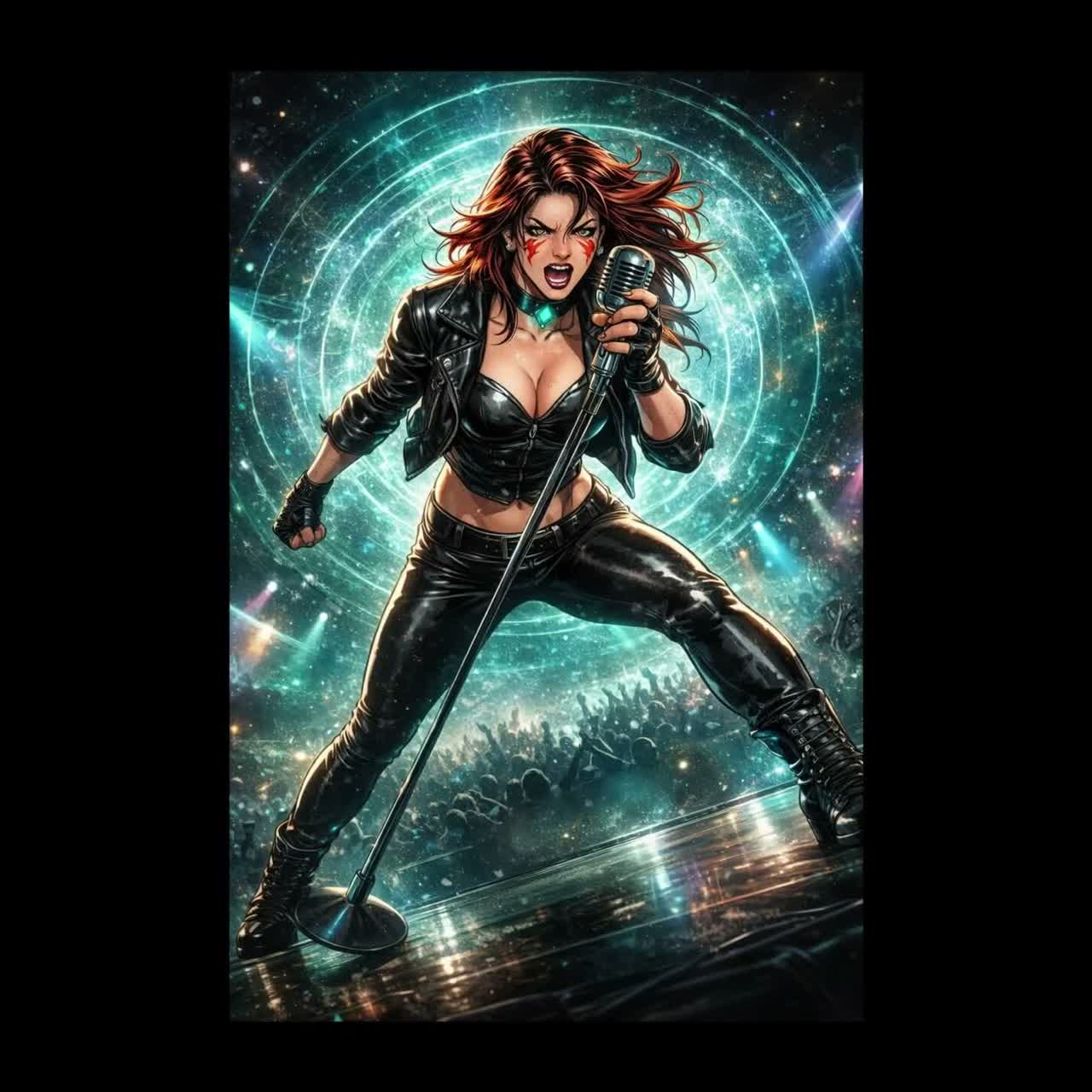 arena glam pop rock anthem with powerful female lead vocal 126 bpm key of e minor style blends Rock, Hard Rock, Pop Rock, New Wave heart barracuda Alternative Rock, Post-Grunge, Pop Rock, Folk Rock, Indie Rock attitude and Pop, Dance, Electronic, Jazz, Rock theatrical energy big distorted guitars driving bass thunderous arena drums and soaring poprock chorus designed for stadium crowd chanting verses intense and rebellious prechorus building tension chorus explosive and defiant with the hook burn the sky bridge drops to piano and vocal before massive final chorus vocal style raw emotional and commanding like Rock, Blues, Psychedelic rock, Folk rock meets modern pop diva sound cinematic and highenergy like a live arena performance production glossy but powerful with stacked harmonies guitar leads and huge crowd energy the song should feel like an empowering declaration of freedom and identity similar emotional scale to defying gravity let it go roar and you oughta know anthemic explosive and charismatic