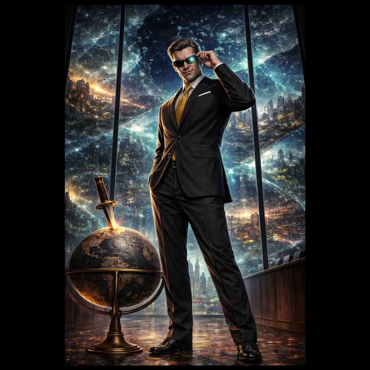 voice 2 amarillo frosch a powerful villain strong confident male vocal with theatrical charisma inspired by queen and Film Score, Orchestral, Classical, Rock, New Wave dramatic piano orchestral hits glam rock guitar and cabaret energy his sections should feel determined commanding and triumphant as he celebrates the chance to conquer multiple realities