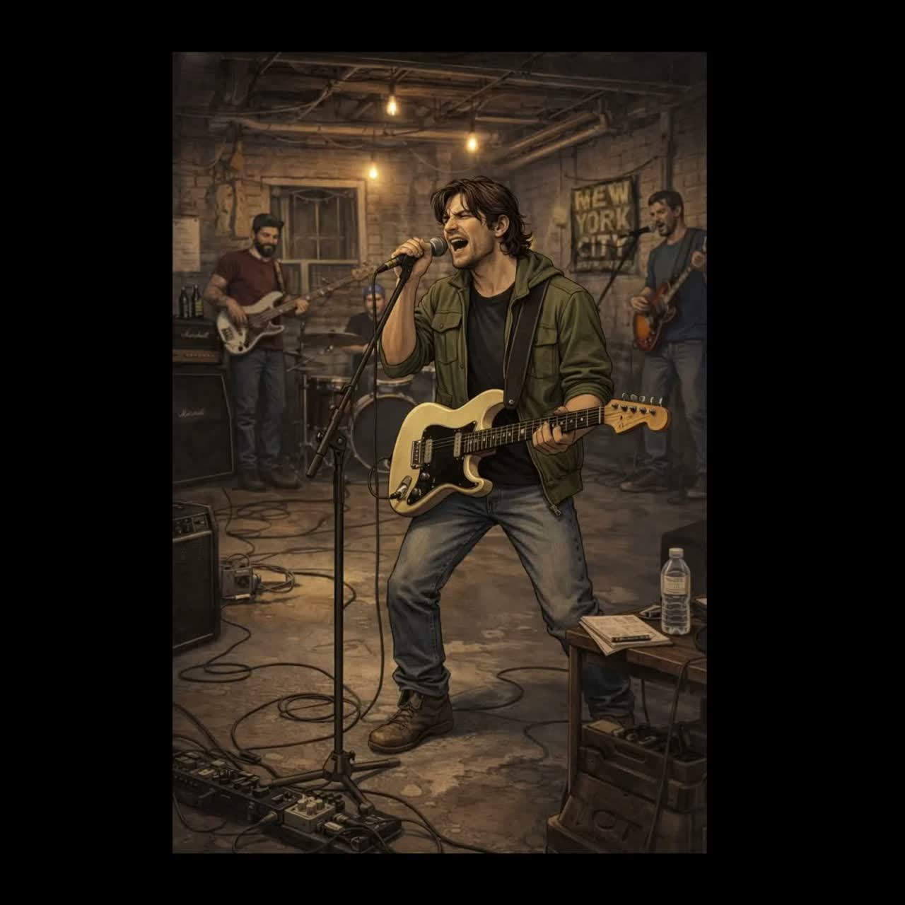 Nick Vargas persona, Preserve original structure, tempo, and drum groove with fills, Male vocal, mid-range baritone/tenor, slightly gritty but controlled, Clear diction, sharp consonants, conversational phrasing with NYC alt-rock attitude, Expressive but not soulful; no melisma, no blues phrasing, no southern accent, Tight electric guitar driven alternative rock, Percussive rhythm guitar + melodic lead, Dry, punchy drums, active bass, minimal reverb, clean modern production, Lyrics: sharp, observational, sarcastic, emotionally restrained but intense, Absolutely no acoustic guitar, no slide guitar, no pedal steel, no country, no americana, no roots rock, no twang
