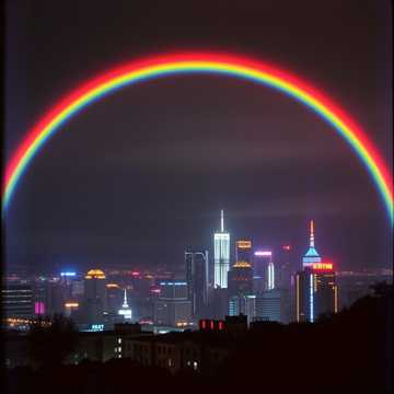 Hyperpop Ă bubblegum-bass; ~150â156 BPM, bright major, Pitch-shifted leads (formant flips), chopped ad-libs, hard sidechain pump, OTT/glitch fills, Instruments: detuned supersaws, glassy plucks, bitcrushed drums, sub/808, noise risers, Hook = color call-and-response; pop-drop after each chorus with vox-chops (âred⊠orange⊠go!â), Flow: Glitchy rain SFX + pluck riff â V1 (rain â bow) â Pre (promise after pain) â BIG Chorus (chant colors) â V2 (color traits) â Pre2 â Chorus2 â Hyper break (granular color-stutter) â Final Chorus â tag, Mood: candy-bright, maximal, futuristic
