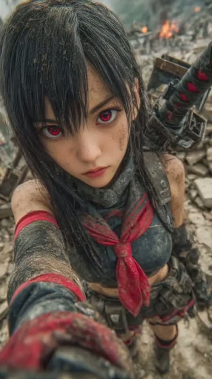 Epic J-metal/symphonic, gothic, fast, staccato, Female lead 23, Japanese vocal style, confident, slightly sexy, raw tone, Intro: Shadows fall, night deep / I hear cries, cannot sleep, Verse1: Walls close, air tight / Steps wrong, chains hold / Still I rise, will not drown, Pre-Chorus: Darkness waits / I push, fight, break bind / Light far, I will find, Chorus1: I run, fight, stand, go / Push, scream, will not fall / Break, rise, reach, flow / See light, hear call, Verse2: Storms rage, roads shattered / Pain sparks glow in dark, Chorus2: I run, stand, break, climb / Push, reach, fight, shine / Rise, leap, call, soar / See end, be no more, Outro: I run, fight, reach light / Through pain, hold tight / Darkness fades, dawn arrives, Crunchy guitars, punchy drums, orchestral swells, cinematic mix, vocals precise to beat