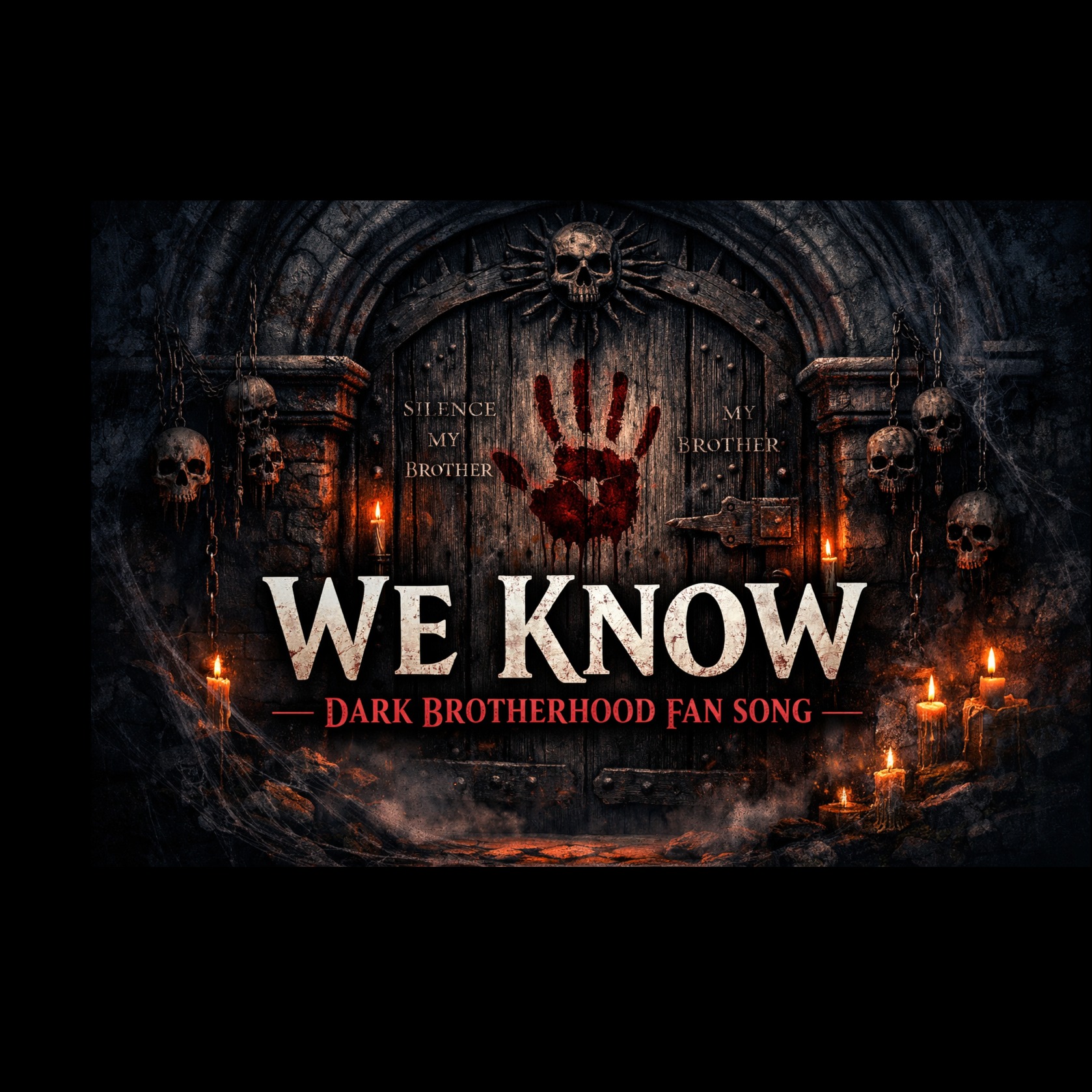 dark gothic cinematic metal, evil and scary, slow build song, starts with a spoken female voice as the night mother, whispered voices, low drones, distant thunder, single bell toll, ritual drums, dark ambient strings, deep bass pulse, haunting choir, ghostly female backing vocals, male chant choir, grows bigger each section, subtle distorted guitars enter in verse 2, massive orchestral-metal chorus, tribal drums in breakdown, terrifying atmosphere, sinister, dramatic, horror fantasy, elder scrolls dark brotherhood vibe, huge final chorus, cinematic ending