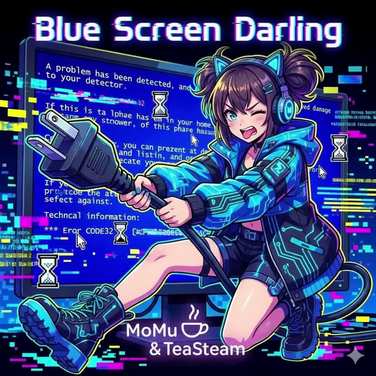 Strong Game Boy–style 8-bit chip tune, BPM 95–110, Authentic GB sound palette with rough square-wave lead, simple pitch bends, and fast arpeggio cycling, Triangle bass is dry, bouncy, and minimal, Drums use pure noise-channel style: hissy noise-hats and crunchy click-snares, rigid and digital, No real reverb; use fake echo with rapid note repeats only, Add classic GB-style SE used musically and rhythm-locked: coin pings, cursor clicks, jump chirps, save sparkles, Vocal: female, whisper-cute, heavily lo-bit filtered, narrow and small, embedded like another chip channel, “んー” feels like a sustained GB hum with mild digital clipping sweetness, Mood: cozy tea time in a pixel world, playful, warm, nostalgic, Use the provided Japanese lyrics exactly as written