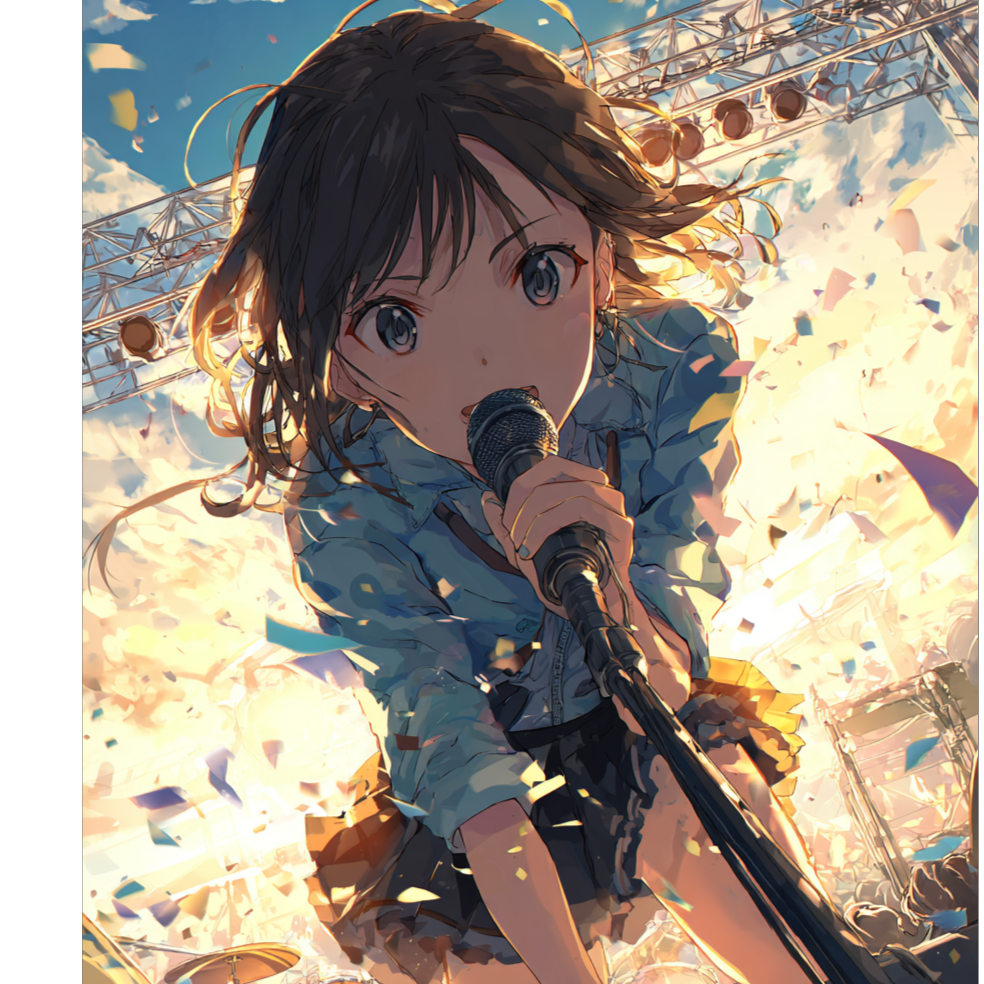 A fast-paced J-Pop festival anthem at 170 BPM, inspired by the vibrant energy of a school culture festival, Female vocals move from clear, nervous tones to bright, layered harmonies bursting with confidence, Driving drums, sparkling synths, and electric guitar chops mirror the heartbeat of the stage, The mood is uplifting, determined, and nostalgic, capturing one fleeting moment of youthful victory