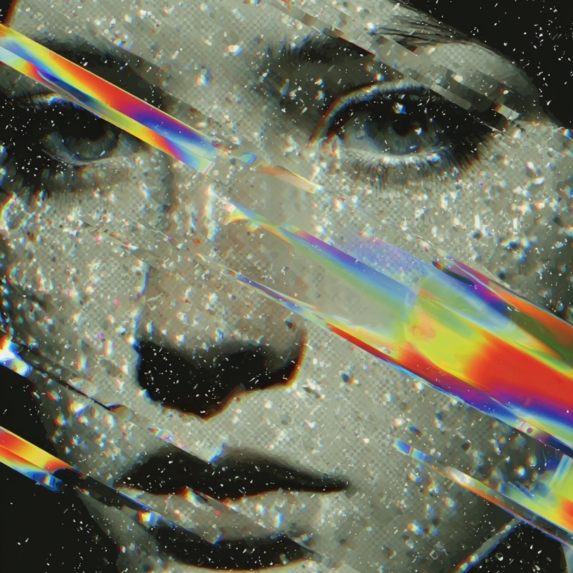 Loud hyperpop, experimental electronic track blending chaotic energy with ethereal atmosphere, lo-fi, distorted synth arpeggio loop, soaked in reverb and bitcrushing, Glitchy, syncopated drums, distorted 808s, digital snares) drive the rhythm, layered with bursts of static, noise, and broken samples for a corrupted, cyberpunk texture, Haunting, manipulated vocals—glitched, reversed, or pitch-shifted float detached and ghostly, isolation, rebellion, and digital decay noise breaks and heavy sidechain compression disrupt the flow unpredictably, Mid-track, a breakdown of abrasive textures—white noise, feedback, metallic clangs—adds intensity before returning to a lo-fi, rhythm-driven outro, The sound is raw and unpolished, vintage-inspired synths processed through distortion, granular FX, and spectral reverb, intense, melancholic, and beautifully broken