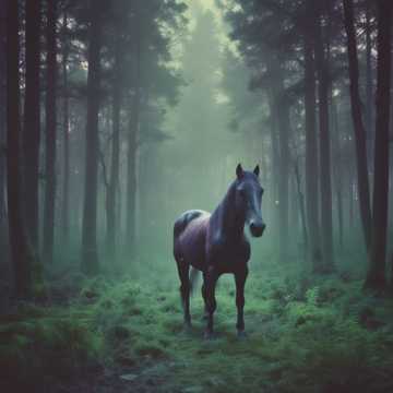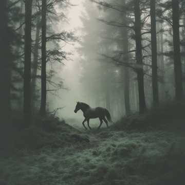epic death metal, energetic performance with elements of horror in three voices - powerful male voice, clear female voice, clean male voice based on a scary fairy tale at the pace of a horse race