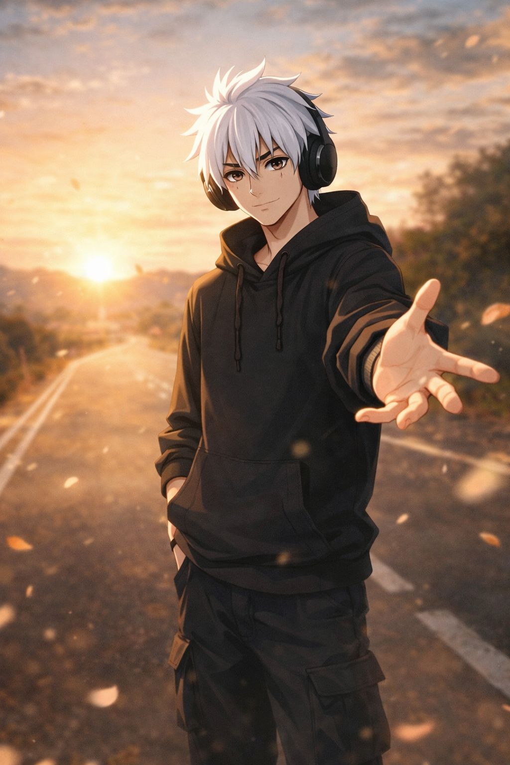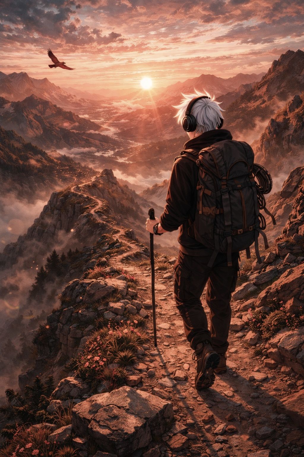 High-energy J-Pop and J-Rock fusion characterized by a fast-paced 4/4 drum beat with driving snare hits and rapid hi-hat patterns, The arrangement features bright, distorted electric guitar power chords and melodic lead lines, layered with shimmering synthesizers and a prominent, rhythmic bassline, The male vocals are powerful and emotive, utilizing a high tenor range with frequent vibrato and soaring melodic leaps, The song structure follows a classic pop-rock progression with a build-up in the pre-chorus leading to an explosive, anthemic chorus, Production is polished and dense, featuring wide stereo imaging, light reverb on vocals, and a punchy, compressed mix typical of modern anime opening themes, The key is in a bright major scale with a tempo of approximately 170 BPM