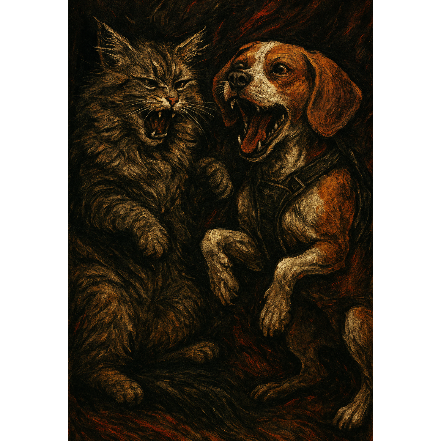 Multi-Genre hybrid of: [[[Death Metal], [Blackened Doom], [Deathstep Inflections], [Sludge Grind]]; [Compose a violently aggressive track driven by down-tuned chug riffs, blast-beat and double-kick drumming, sludge-weight bass distortion, and guttural death growl vocal delivery, Add subtle deathstep wub growls and sub-reinforced drops beneath the guitars to thicken brutality, Atmosphere is oppressive, violent, and relentless ~ feedback squeals, pinch harmonics, distorted bass walls, and black-metal tremolo guitars weaving in chaos, Overall mix: guitars mid-forward and crushing, drums colossal and dry, bass suffocatingly heavy, subtle deathstep growls buried under riffs for extra grind, vocals commanding inhuman low roars with occasional shrieks, ]]