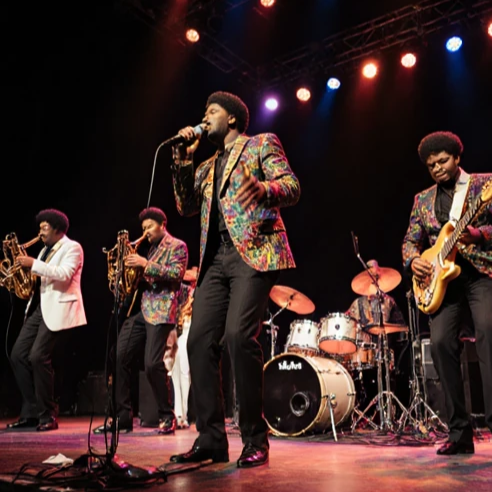 Disco-funk anthem with an explosive, dance-floor opening, Tempo around 118 BPM, Starts with layered brass fanfare and rising string glissando, followed by a sharp snare hit that launches into full groove, Bright horns punch short syncopated phrases, guitars play tight 16th-note strums with wah effect, and bass jumps in octaves with funky precision, Add handclaps and tambourine for sparkle, The intro should feel cinematic and grand—like a curtain opening to pure celebration, Drums drive a relentless four-on-the-floor pulse with crisp hi-hats and congas accenting each measure, Electric piano and synth strings swell underneath, building euphoria before vocals enter on the downbeat with rhythmic phrasing, Maintain a lively call-and-response between horns and vocals throughout, The mix should feel bright, polished, and full of motion—pure groove energy that invites everyone to move from the very first second