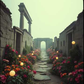 Orchestral sound, Taiko drums, large percussion, Choral vocals, Violins, cello, Electric guitar, with reverb, Piano, organ